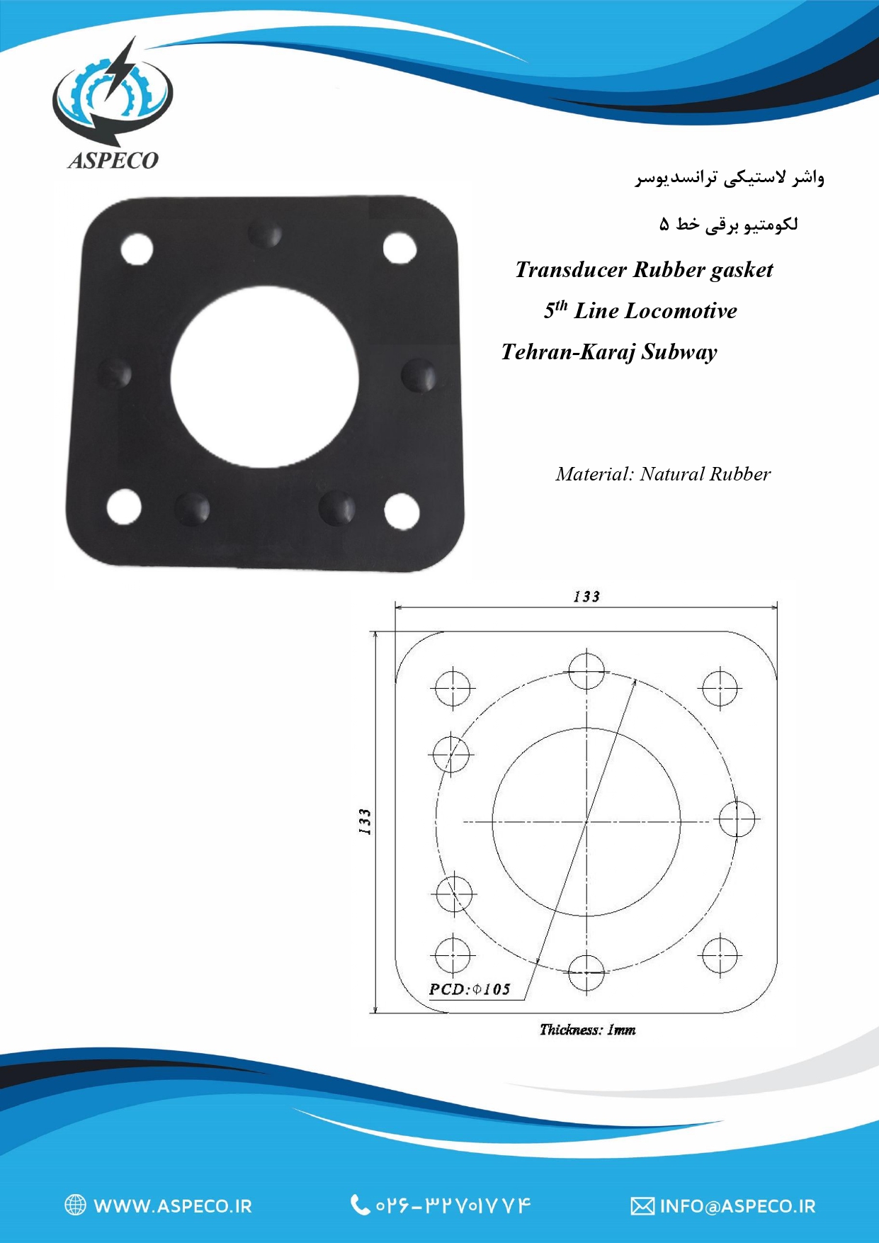 واشر لاستیکی ترانسدیوسر لکومتیو برقی خط ۵
