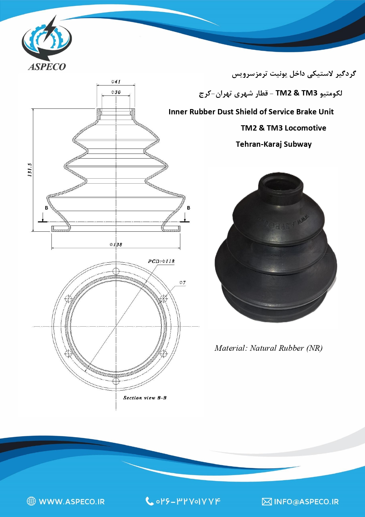 گردگیر لاستیکی داخل یونیت ترمزسرویس لکومتیو TM2 & TM3